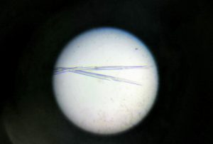 Gleden var stor da jeg så i mikroskopet i morrest og fant krystaller! Gruppen til Professor Helena Danielson har studert SMYD3 en stund,[1] og jeg reproduserte bare kjente betingelser, men det er fortsatt fint å se at man har det i fingrene. Jeg skal prøve å "soake", det vil si putte krystallene i en annen løsning, for å få inn allosteriske regulatorer av enzymet senere denne uken. Neste uke vil krystallene så bli testet på en av strålelinjene ved ESRF i Frankrike. Forhåpentligvis vil jeg da kunne se elektrontetthet for regulatorene og bygge inn de 3D koordinatene for molekylene.